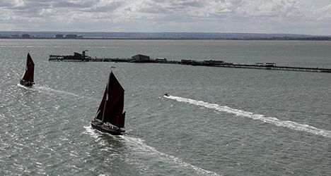 Southend Barge Match 2022, sb Marjorie and sb Repertor about to round the pier. Credit: Martin Harvey